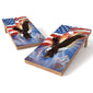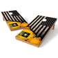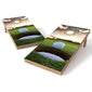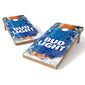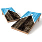 Find a level area approximately 40’ x 10’ feet and position the boards 27’ feet apart facing each other. A parking lot or grassy area is perfect. The front of the boards should be 27’ feet apart, not the back of the boards. Note the sun’s position when placing your boards; you don’t want to be throwing directly into it when playing.